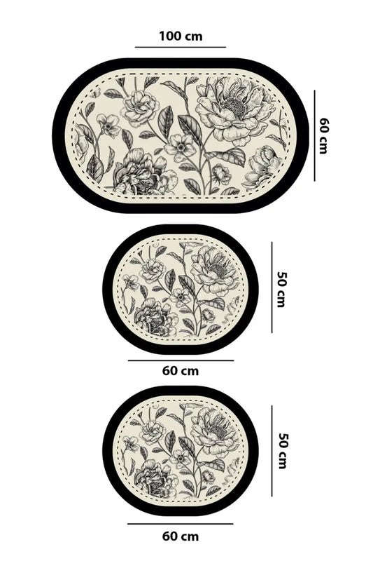 Kır Çiçeği Bej 3’lü Akrilik Klozet Takımı ve Banyo Paspas Seti